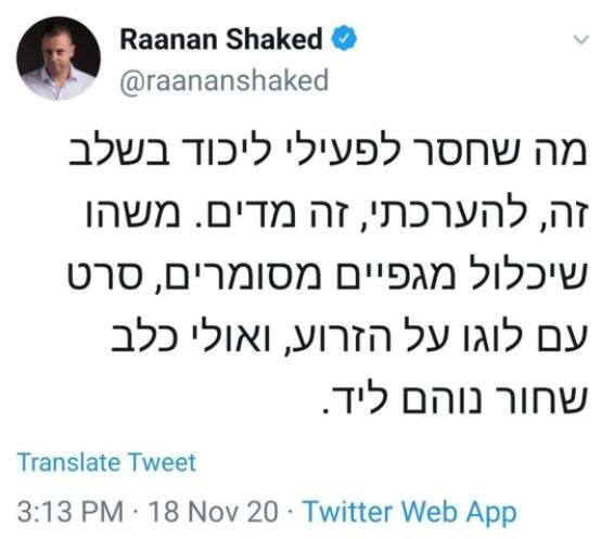 סחתיין עליכם? pic.twitter.com/PWOLVg0M8S— נדב שטראוכלר (@shtrauchler) November 18, 2020