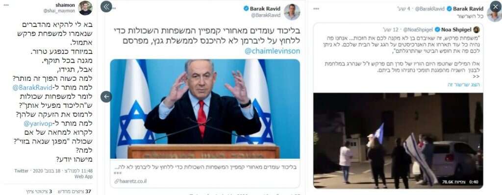 משפחות שכולות הן קודש אבל רק כשהן אומרות את הדעות הנכונות. בטוויטר טרחו להציף את הפיד בדוגמאות בהן התקשורת לא התרגשה מביזוי המשפחות האלה. הדוגמה החשובה מכולן דווקא הופנתה לריבלין עצמו שפגע במשפחות, כמו מירב, אימה של סגן שיר חג'אג', שנרצחה בפיגוע הדריסה בארמון הנציב ב-2017: