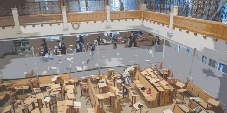 והבחור הסתכל סביבו ולא הבין. ומאי שם הוא שמע קול שאומר לו שהכול זה קומבינה של היצר הרע שבא להסיח את דעתו, ואחריתו מי ישורנו. ואם עכשיו הוא עוצר באמצע הלימוד כדי לברר מה קרה, הדרך מכאן ועד האזנה לחדשות של השעה שש היא קצרה מתמיד, השם ירחם, ומי יודע אם תהיה משם דרך חזרה. אז הוא אסף את עצמו, קימט את המצח, הסיר את המשקפיים, התפקס כל כולו אל שורות הגמרא הקצרות והתחיל לקרוא אותן בקולי קולות. אך לא עברו דקות ארוכות והבחור התחיל לשמוע איך הקול שלו חוזר אליו בהד. וזה היה מוזר. כי לפתע בית המדרש היה שקט וקול התורה הממלא אותו בדרך כלל, נדם. אז הוא הרכיב בחזרה את המשקפיים והסתכל סביב וגילה כי רק הוא לבדו בבית המדרש ואין אפילו נפש חיה לברר איתה על מה ולמה ההתרוקנות הזו. אז הוא קם ממקומו בחשש, השאיר את הגמרא פתוחה ונתן דעתו לחזור אליה תיכף ומיד ושם פעמיו לפנימיה.