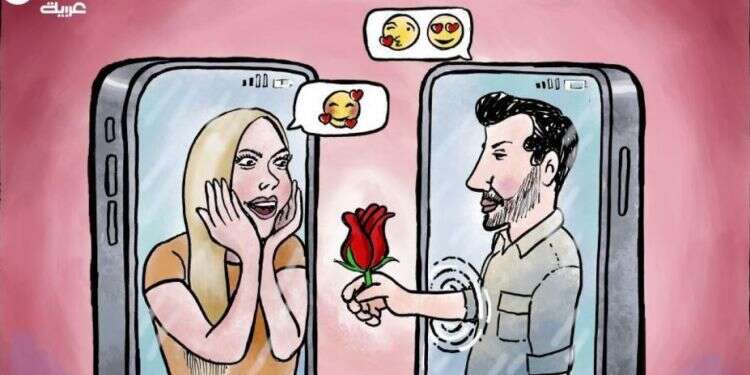 אהבה וירטואלית: הבחור מחזיק בידו ורד אדום לרגל יום האהבה – עִיד אלחֻבּ. ידו יוצאת מהמסך של הטלפון הנייד ומגישה את הפרח לבחירת לבו בלוויית פרצופונים מאוהבים.