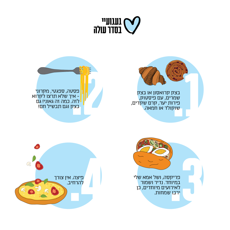 שלוש שנים מאוחר יותר – תפנית בעלילה בצורת עניין בריאותי שאומר: כדאי שלתקופה הקרובה תורידי גלוטן וסוכר (ועוד כמה דברים כמו מטוגן וחריף וקפההה שה׳ יעזור לי, אבל בבצקים עסקינן). בקיצור, טרגדיה. איך ממשיכים מכאן? מה אוכלים? איך שמחים? מי יושיעני נא? שלחתי מיד הודעה לחבר צליאקי ושאלתי איך מתמודדים עם הריק שבהיעדר פחמימות ריקות. "אני לא עושה עניין מאוכל", הוא אמר. "הבנתי אותך", אמרתי והמשכתי הלאה לחפש את שמחת החיים שהשארתי בתוך הפיתה־שווארמה האחרונה שאכלתי.