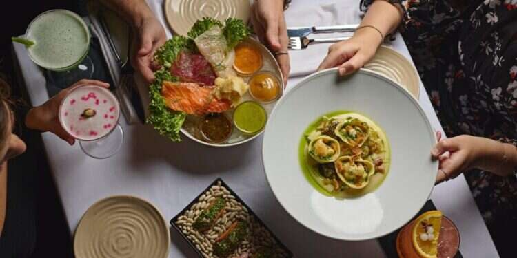 שנית, מקור המשיכה של המקום הוא אווירת השמחות. החל מהשעה 22:00 המוזיקה מתעצמת ורקדניות בלבוש מינימלי עולות להופיע על הבר או נתלות על חישוק מהתקרה, זאת לצד מופעי אש גרנדיוזיים. כבר תהינו בעבר במדור זה אם עצם היות מסעדה כשרה יש בה כדי להחיל גם קודי התנהגות מסוימים, והביקור הנוכחי בהחלט הציף בנו מחשבות דומות. כך או כך, לחוויה הזו בהחלט יש קונים. אנו הגענו לכאן בליל ראשון החלש מטבעו, בערבו של יום שבו אזור חיוג 03 הוזעק שלוש פעמים לממ"דים ובכל זאת חלל המסעדה הגדול התמלא בסועדים מפזזים. נדמה שגם התמחור לא הפריע לשכנינו, להפך – כמעט על כל שולחן ניצבו דליי כסף יוקרתיים ובתוכם בקבוקי גריי גוס או דרפייה. אחרי ההתרשמות הראשונית הבלתי נמנעת צללנו לבחון את המזון. פתחנו עם קוקטיילים, רוזי ולוקום, שהיו חביבים ותו לא וגם די הזכירו אחד את השני: מיקס צבעוני, לא מתפזר מדי, מעליו קציפת חלבון ומיני אבקות. האוכל הגיע לשולחן חיש קל, עניין שחזר על עצמו לאורך הערב. לחם העננים היה פרוסה עצומה ואוורירית ובניגוד לבריוש הפופולרי, פה הוא הגיע עם קראסט שלא הצלחנו לסיים ולווה בשמן-זית-שום-קונפי-בלסמי וטחינה בנאליים למדי.