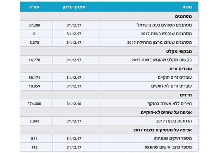 נתוני מנהל האוכלוסין ביחס לשוהים בלתי חוקיים בישראל