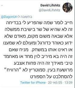 ליפשיץ מחק מאוחר יותר את הציוץ, אבל כמה וכמה כבר הספיקו לתהות על הגבולות שהציב: