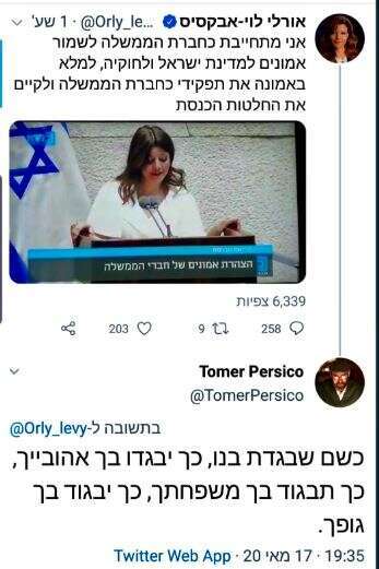 האופציה השנייה היא לתת למאות תגובות לקטול אותך, לשים אותך ללעג ולקלס, לזרוק עליך עגבניות וירטואליות בחוצות הטוויטר, עד שתואיל בטובך למחוק את הציוץ ולמלמל כמה דברי הסבר. די ברור שהאופציה הראשונה עדיפה, אבל יש כאלה שמעדיפים לקבל את כל מסלול השיימינג (המוצדק) משום מה. תומר פרסיקו, הוא חוקר ומרצה בתחומי דתות העולם, מה שהשפיע ככל הנראה על ניסוח קללות בסגנון עתיק לשרה החדשה, אורלי לוי-אבקסיס, שהצטרפה לממשלת נתניהו: