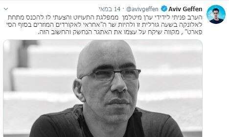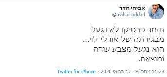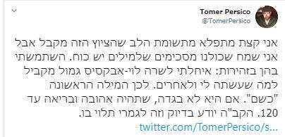 לאחר כמה שעות פרסיקו מחליט להוריד את הציוץ בלי מילת התנצלות כי "הסבירו לו" שהוא לא ראוי. באמת תודה: