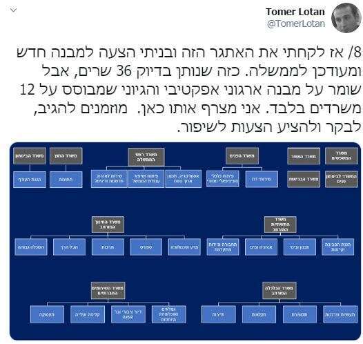 והיה אפילו את תומר לוטן שהציע בשרשור ארוך תוכנית לסידור מחדש של משרדי הממשלה, כך שמספר השרים יישאר אבל מספר המשרדים יקטן: