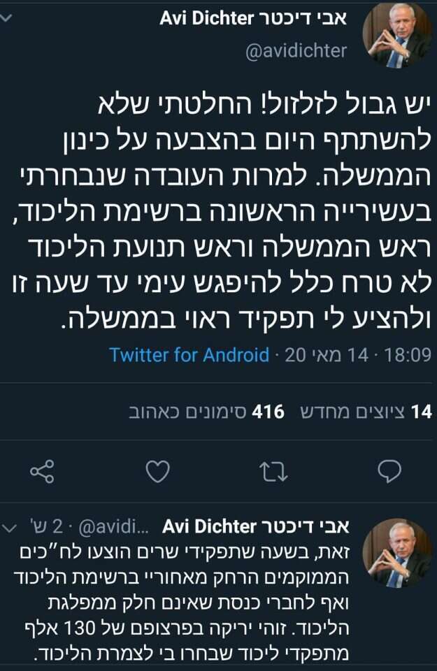 ביום חמישי שעבר, היום המתוכנן להשבעת הממשלה, מחו כמה מהח"כים הנעלבים על כך שליכודניקים שממוקמים הרחק מאחוריהם ברשימת הליכוד לכנסת קיבלו תפקידים משמעותיים והם נזנחו מאחור.
