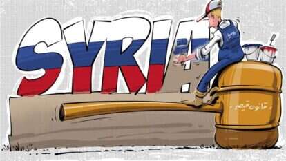 הוא יושב בנחת על פטיש מעץ, שעליו כתוב "חוק קיסר" - קַאנוּן קַיְצַר. זהו פטיש שמשמש את השופטים ואת יושבי הראש ששומרים על הסדר. חוק קיסר, שאושר בבית הנבחרים האמריקאי, נועד ללחוץ על משטר אסד ולהטיל סנקציות חמורות על כל מי שיסייע לנשיא סוריה. אך, הרוסים עסוקים בשלהם. הם מצפצפים על החוק האמריקני, וממשיכים לשתף פעולה עם בַּשַאר אלאַסַד, במטרה להשתלט תוך כדי כך על סוריה.