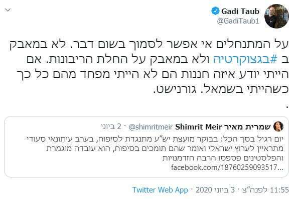 נתחיל דווקא בד"ר גדי טאוב, שכפי שמעיד על עצמו הגיע זה לא מכבר לחוגי הימין והפך לנציג נלהב של המחנה. לצערנו, זה כולל גם הפגנת בוז לכל מה שהיה פה קודם: