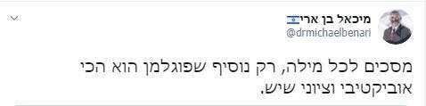 בן-ארי אולי קיווה שבפעם הבאה לא יפסלו אותו כל כך מהר, והסכים: