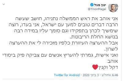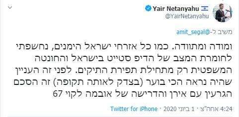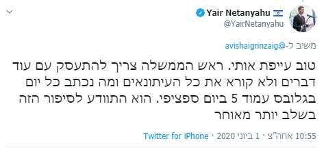 בסוף נתניהו הבן כתב כך: