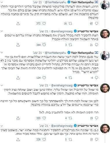 הפיד נכנס להלם. גרינצייג היה הראשון למיטב ידיעתי שהציג את הקירבה בין נתן אשל לנתניהו ואפילו זכה לתשובה, סוג של תשובה, ולא חסימה. אבל השמחה הייתה מוקדמת. למחרת גרינצייג נחסם. חבל, זו הייתה יכולה להיות תחילתה של ידידות מופלאה.