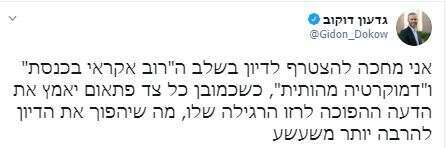 טוב, תגידו לי, האנשים שינו את דעתם, בשמאל אנשים נאמנים לדרך ולא למי שמייצג אותה. אם שרון או גנץ התהפכו אז גם לשמאלנים מותר. זו הייתה יכולה להיות יופי של תשובה, אלא שהבעיה היא שגם דקדקנות בתקנון הכנסת או מנהגי הכנסת הוא עניין של פוזיציה.
