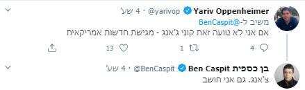 רוב המגיבים העירו לו שמדובר בעיתונאית הידועה של CNN קוני צ'אנג אבל למה להרוס גיחוך דבילי על חשבון נתניהו בשביל עובדות, או לפחות בדיקות עובדות. בשביל זה יש עיתון (נניח). מה שבאמת מדהים זה שגם בן כספית עצמו מודה שזו כנראה לא אשתו לשעבר של נתניהו. גם זה לא גרם לו לוותר על הדאחקה ההו כל כך מצחיקה.