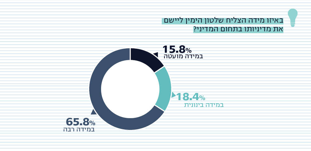 מעבר ללקח הגאו־אסטרטגי, תקופת השלום בסוף כהונתו של טראמפ מהדהדת בקול גם בפוליטיקה הפנימית בישראל. למרבה העניין, רוב הימין קיבל בהבנה ובתמיכה את דחיית תוכנית הסיפוח שאיתה הלכנו לבחירות, לטובת הסכמי השלום. הרחבת הריבונות ביו"ש, למגינת ליבם של חלק מאנשי ההתיישבות, התבררה גם בימין הרחב כמשנית לשלום. השלכותיה של תובנה זו על הפוליטיקה בימין, במיוחד בתקופה שבה מפלגת "ימינה" פוזלת למצביעי שמאל, עשויות להתברר כמשמעותיות מאוד.