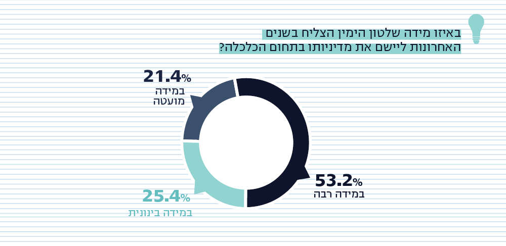 נוכח עלייתו של השיח הכלכלי, מתן תשובות ברורות מהצד הימני של המפה הפך לצו השעה. זהו אמנם שריר שהימין לא מתח שנים רבות, אבל בכל זאת יש לו מורשת בתחום הזה. על פי הסקר המתפרסם בעמודים אלה, יותר ימנים כיום מעוניינים לראות על סדר היום סוגיות כמו פתיחת השוק ויישום מדיניות כלכלית ימנית, מאשר אלה שתובעים את חיזוק ההתיישבות ביהודה ושומרון. כשאפילו איתמר בן־גביר נדרש להשיב לשאלות בדבר עמדותיו הכלכליות, אפשר להבין שמשהו כאן השתנה.
