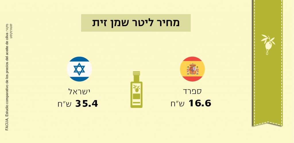 המטרה המסוימת הזו אכן מתממשת, והמכס מייקר בפועל את מחירו של שמן הזית שאתם קונים. אם הייתם נכנסים למרכול בספרד הייתם יכולים לרכוש ליטר שמן זית כתית מעולה ב־16.6 שקלים בלבד לליטר, ואילו כאן המחיר הממוצע עומד על כ־35.4 שקלים. בשנתיים האחרונות ירדו מאוד מחירי שמן הזית בשוק העולמי, בעקבות הצטברות מלאי באיחוד האירופי והיצע גבוה, והם ברמה הנמוכה ביותר בחמש השנים האחרונות. אבל בישראל, הודות למכס, אנחנו לא זוכים ליהנות מהשפע האירופי במחירי המקור. המכס על ייבוא שמן זית עומד על 12 אחוזים ממחירו המקורי פלוס 4.48 שקלים לק"ג, ובכל מקרה לא פחות מ־5.47 שקלים לק"ג, מחיר שעשוי להגיע עד 50 אחוזים ממחירו של שמן זית בחו"ל.