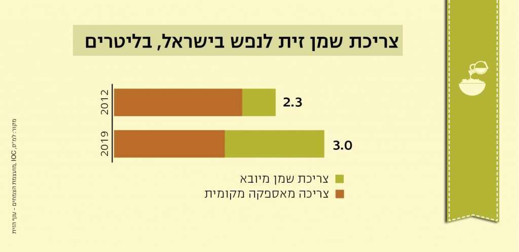 לא ברור אם זו מהפכת הבריאות או סתם שינוי בטעם המקומי, אבל בשנים האחרונות הישראלים צורכים הרבה יותר שמן זית. שיעור הצריכה של שמן זית לנפש עלה בכ־30 אחוזים משנת 2012 (2.3 ק"ג בשנה) ועד שנת 2019 (3 ק"ג לשנה). גם החקלאים הגדילו במשך השנים את הייצור המקומי שלהם, ובשלושים השנים האחרונות נוספו כ־260 אלף דונמים של מטעי זיתים. הייצור המקומי עדיין מהווה כ־60 אחוזים מהצריכה בישראל, והיתר מגיע בייבוא של תוצרת מחו"ל. כלומר, הייבוא לא רק שלא פגע בחקלאות המקומית, אלא להפך - היא התרחבה פלאים, והגידול בביקוש היה גדול כל כך עד שהכרחי לייבא כדי לספק אותו.