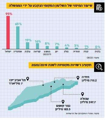 מדהים עד כמה הממשלה בישראל ריכוזית: 95 אחוזים מתקציב הרשויות המקומיות נקבעים על ידי הממשלה. הרשויות לא שולטות על גובה המיסים שהן גובות מהאזרחים והם נקבעים על ידי הממשלה, כולל תעריף הארנונה, מנגנון ההעלאה האוטומטי שלה, וגם ההנחות בארנונה שחברי הכנסת כל כך אוהבים לחלק, אף שלא הם אלה שצריכים להתמודד עם התקציב המקוצץ. תקציב הרשויות המקומיות הוא רק 5.5 אחוזים מהתוצר בישראל, לעומת 11 אחוזים בממוצע במדינות ה־OECD.