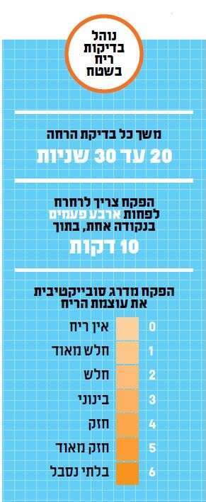 מהו טון הדוני? במסמך נוהלי המשרד מוסבר כי זהו דירוג רמת הנעימות של הריח, על סולם שנע בין 4 למינוס 4. בימי הקורונה לא יכולתי לצאת עם צוות המריחים אל השטח ולרחרח את ההליך, ולפיכך הסתפקתי בשיחת טלפון עם שני בעלי תפקידים במשרד: גיא לסט, מנהל תחום צמצום זיהום אוויר מתעשייה, וד"ר עמית אופיר, ראש ענף איכות אוויר ומפגעי ריח. "לאחר שמתקבלות במוקד המשרד להגנת הסביבה תלונות על ריח רע, הצוות יוצא להריח את מקור הריח ולקבוע האם מדובר במטרד. המריחים פשוט משתמשים באף שלהם. אחרי שהות ארוכה בשטח הם ממלאים דו"ח שלם על מה שהריחו", אומרים השניים. הסמכת מריח מטעם המשרד כוללת מבחן תיאורטי ומעשי, שבו מריחים בקבוקים. "מנוזלים ונשים בהיריון לא יכולים לעבור את המבחן, וגם לא להיות חלק מצוות המריחים בשטח. גם חולי קורונה שחוש הריח שלהם נפגע לא יכולים להשתתף".