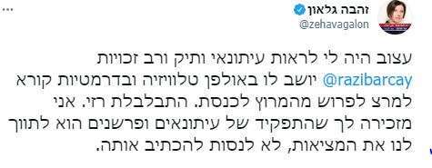 הבנתם? זהבה גלאון פתאום נזכרה בתפקיד העיתונאים.