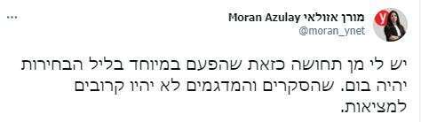 או כמו הכתבת הפוליטית, מורן אזולאי שגם סוג של הלכה על בטוח: