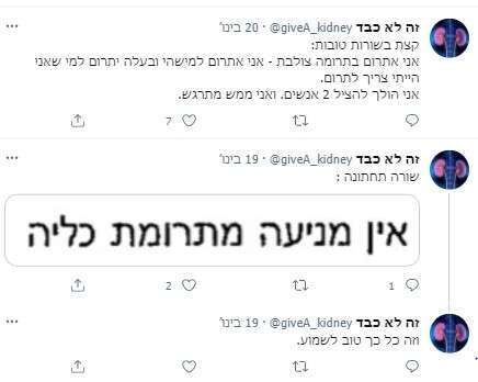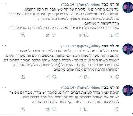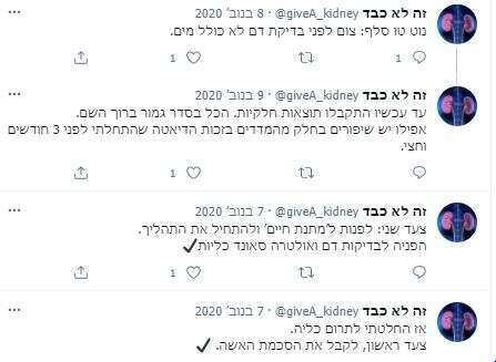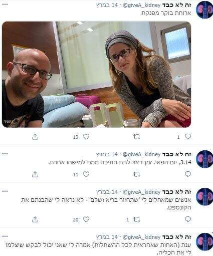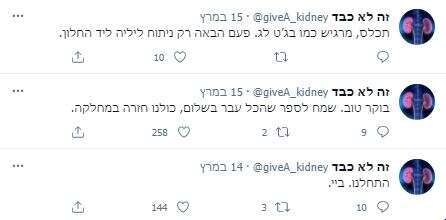 אירוע מיוחד באמת קרה השבוע בטוויטר. גלעד דביר תרם כליה לאשה שלא הכיר והחליט לתעד את כל השלבים ולשתף את העוקבים בתהליך. בפרופיל שפתח לרגל האירוע בנובמבר שנה שעברה ונקרא "זה לא כבד", הוא תיאר הכול, משלב ההחלטה ועד השחרור הביתה. בגלל שהתהליך נמשך כמה חודשים עם למעלה ממאה ציוצים, נביא כאן רק מדגם מייצג. וכמובן, נצדיע לו ולתורמים הרבים האחרים.