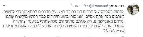 היו גם כאלו שחיפשו את תגובותיהם של מזהי התהליכים, מגני ה"טרור היהודי", ואלו שיודעים יפה מאוד למצוא מילים לגינוי כשמדובר ביהודים אלימים: