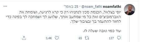 אבל את עיקר תשומת הלב והתגובות הרבות משך ציוץ אחד של ינון מגל: