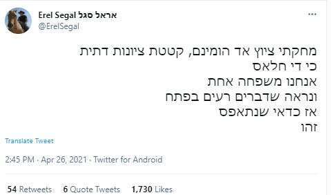 — בצלאל סמוטריץ' (@bezalelsm) April 24, 2021