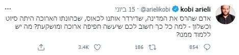 שעל זה, אגב, שאל יפה קובי אריאלי: