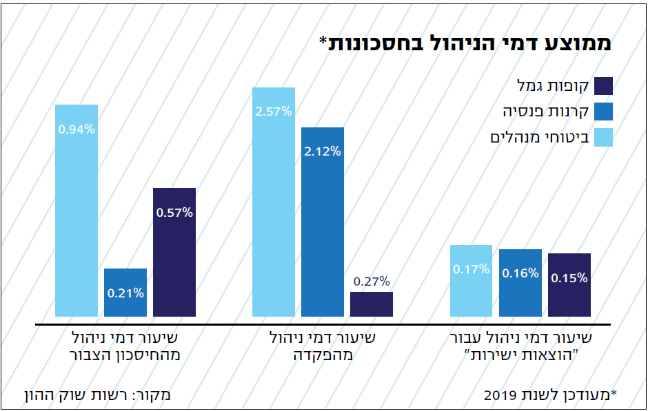 רוב החוסכים אולי לא ממש מודעים לכך, אך מנהלי החסכונות הפנסיוניים שלנו – בקופות הגמל, קרנות הפנסיה וההשתלמות וביטוחי המנהלים, המכונים "גופים מוסדיים" – נוהגים לגבות מהחיסכון שלנו שלושה סוגים של דמי ניהול. האחד הוא דמי ניהול מההפקדות, שנגבים כאחוז מסוים מכל הפקדה לחיסכון. דמי ניהול מסוג שני הם מהצבירה – דמי ניהול הנגבים מסך החיסכון שנצבר (בקופות הגמל ובקרנות ההשתלמות נהוגים ברוב המקרים דמי ניהול מהפקדה בלבד). הסוג השלישי ואולי הפחות מוכר, אם כי הוא נגבה כמעט בכל סוגי החסכונות, הוא דמי ניהול עבור "הוצאות ישירות". דמי הניהול הללו נגבים לצורך תשלום לחברות השקעה (קרנות השקעה) חיצוניות שמנהלי החסכונות שלנו "שוכרים את שירותיהן" כדי שינהלו חלק מהכספים שלנו. דמי הניהול הללו עשויים להגיע עד 0.25% בשנה מהכספים הצבורים בחיסכון, שיעור בהחלט לא מבוטל.