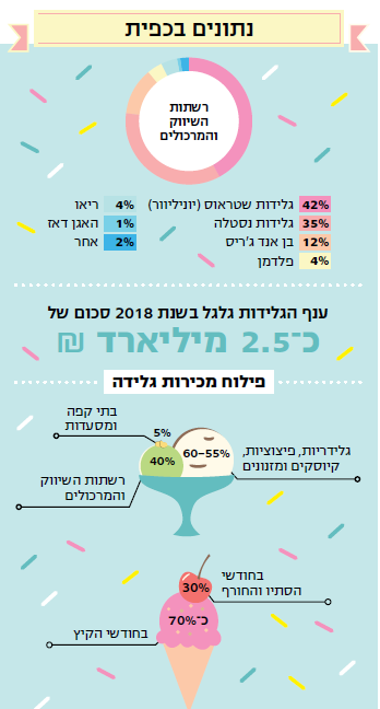 מוצרים אחרים אולי לא היו מחוללים סערה גדולה כל כך, אבל מתברר שבלב הקיץ הישראלי גלידה היא נושא רגיש. ישראל היא אכן צרכנית גלידה משמעותית, וישראלי ממוצע צורך כ־10 ליטרים של גלידה בשנה. כשהטמפרטורות מגיעות ל־40 מעלות באזורים נרחבים, יש הצדקה לתעשייה שמגלגלת 2.5 מיליארד שקלים בשנה - מגלידריות שצומחות בכל פינה, דרך האריזות המשפחתיות הנמכרות במרכולים, ועד שוק הפיצוציות.