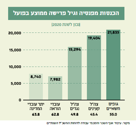 המהלך הזה הוגן במיוחד כשלוקחים בחשבון שמדובר בקריירה המסתיימת בגיל צעיר, ושאחריה ממתינה לקצינים הפנסיה הצה"לית הנדיבה, בגובה ממוצע של כ־19 אלף שקל לחודש (15 אלף לנגדים). אם מחשבים את סכום הפנסיה הכולל שקצין צפוי לקבל, בהתחשב בכך שהוא ייהנה ממנה שנים ארוכות – מגיעים לסכום אדיר של 8.8 מיליון שקלים בממוצע, פי 5.2 מעובד מדינה.