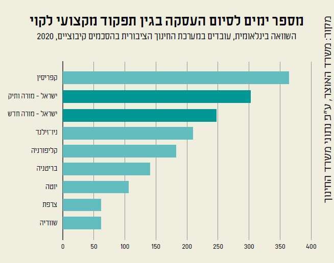 אילו כלים עומדים לפני מנהל שחושב שאחד המורים בצוות שלו לא מתאים? תלוי. אם הוא מורה ברישיון פחות משנתיים, יש הליך סיום העסקה על רקע "אי התאמה", והוא יצטרך למצוא בית ספר אחר. אבל אם מדובר במורה שעבר שנתיים וקיבל קביעות – המנהל יהיה חייב לפנות למסלול מפרך וקיצוני של "סיום העסקה פדגוגי", שבסופו יישלל רישיון ההוראה מהמורה. כמה מפרך? שוב, תלוי. אם מדובר במורה ותיק (מעל 15 שנה), התהליך יימשך 308 ימים. מול מורה צעיר זה ייקח "רק" 243 ימים, שיעור גבוה במיוחד בהשוואה למדינות מערביות. הוויה דולורוזה הזאת כוללת חמישה ביקורים מיוחדים בשיעורים של אותו מורה, דיון במועצת המפקחים, דיון בוועדה מיוחדת, ולבסוף חתימה של מנכ"ל משרד החינוך בכבודו ובעצמו. אה, ולארגוני המורים יש וטו על כל מהלך כזה. לא פלא שהמספרים אפסיים.