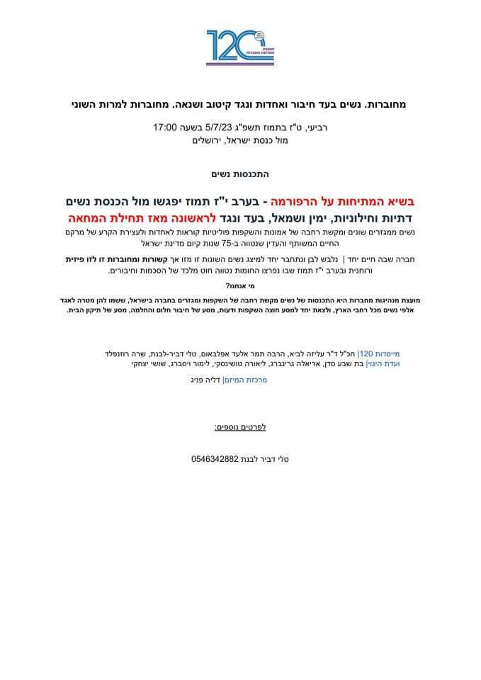 בחודשים האחרונים מתרקמת לה בשקט קבוצת נשים שרוצות להוביל שיח אחר. הכאב הוביל אותנו לקום ולהתאחד, אנחנו, נשים ממגזרים שונים וקשת רחבה של אמונות והשקפות פוליטיות, בחרנו יחד לקום ולקרוא לאחדות ולעצירת הקרע של מרקם החיים המשותף והעדין שנטווה ב-75 שנות קיומה של מדינת ישראל.