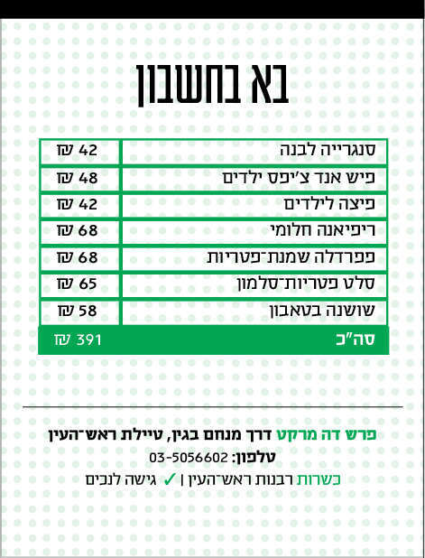 אומנם אני לא כל כך נוהגת לסקור רשתות במדור, אבל אוגוסט וחם ויש ילדים להאכיל ואמא שלי שהתלוותה אלינו (להלן, "סבְתי") כבר כמה זמן משבחת את "פרש דה מרקט", אז שמנו פעמינו אל עבר סניף ראש־העין. הוא נבחר תודות לקרבה הגיאוגרפית ולחניה החינמית אבל לפני הכול – בזכות מזרקות הרצפה שצמודות אליו ומאפשרות לילדים להתרענן לפני, אחרי ובזמן שחולף מרגע הזמנת המזון ועד להגעתו, המוכר יותר כנצח. הילדים זרחו כשהמלצרים חילקו לכולנו טאבלטים, כי הרבה יותר קל לבחור כשיש תמונות וכולם נהנו להתעסק עם שלל האפשרויות.