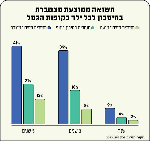 מאז השקתה של תוכנית "חיסכון לכל ילד", לפני כשבע שנים, הופקדו במסגרתה כ־17 מיליארד שקלים. על פי התוכנית, בכל חודש מפקידה המדינה כ־55 שקל לילד (זהו הסכום מינואר 2023), וההורים יכולים להפריש סכום זהה מתוך קצבת הילדים. כזכור, את החסכונות לילדים אפשר להפקיד (באמצעות אתר הביטוח הלאומי) בבנקים ובקופות גמל, כאשר בקופות הגמל החסכונות מתחלקים לשלושה סוגים: בעלי סיכון נמוך, בינוני וגבוה.