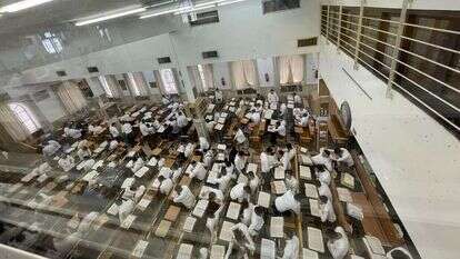 אך מאז שמיכאל לומד בישיבה גדולה ליטאית, יום הכיפורים שלו די השתנה. בישיבה, מראש חודש אלול כבר אפשר להרגיש את המתח, את החרדה והכבדות של יום כיפור. כל אלול כולו מכוון אל השיא של יום כיפור. יומיים קודם, איצ׳ה בומבך, הבחור הגברתן מוועד חמישי, היה מפקד על סיירת בחורים צעירים ונמרצים שהיו מארגנים את כל בית המדרש מחדש. אסטרטגיה אדריכלית שלמה היה עניין מקומות הישיבה ביום כיפור בישיבה. בית המדרש - שביום־יום הכיל 400 מקומות פלוס מינוס - היה מאכלס בתוכו בכיפור כמעט פי שניים. ספסלי פורמייקה צפופים־צפופים ובלתי מרופדים וכיסאות כתר שהיו נדחקים כמעט לכל בלטה ריקה אפשרית. כל המקומות היו ממוספרים ומופיעים על גבי מפה משורטטת שנתלתה מחוץ לבית המדרש.