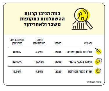 רק לפני כשלוש וחצי שנים, באביב 2020, רבים בארץ ובעולם האמינו שהמגפה המתפשטת תביא לקיצנו. הכלכלה העולמית כמעט עמדה מלכת. מחיר הנפט, שכיום מתקרב ל־90 דולר לחבית, צלל לתחתית. והנה התברר שלמרות התחזיות האפוקליפטיות, ערעור הביטחון התעסוקתי, ההפסדים שספגו רבים מהעסקים והגירעון העמוק – רוב החסכונות שלנו סיימו את 2020 לא רע בכלל, עם תשואה חיובית נאה.