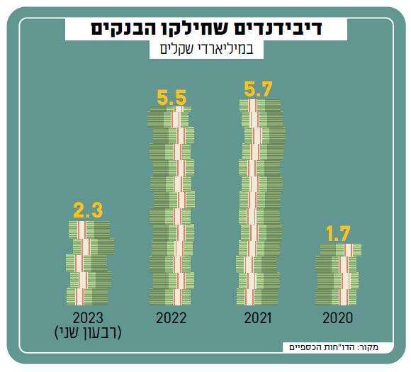 הבנקים ידועים בחלוקה נדיבה של דיווידנדים לבעלי המניות, במיוחד בשנים האחרונות שבהן הרווחיות טסה לשמיים על רקע הריבית הגבוהה. מדובר בכ־40% מהרווחים שמחולקים כדיווידנד מדי רבעון. כך למשל, ברבעון האחרון (אפריל־יוני) הרוויחו הבנקים 7.5 מיליארד שקל, וחילקו דיווידנדים של כמעט 2.6 מיליארד שקל.
