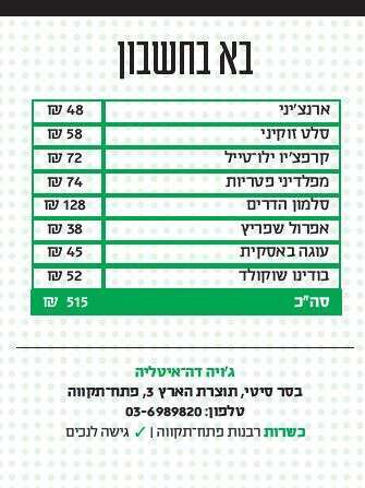 אם המושבות פתח־תקווה התקנאה בבירות הקולינריות בעולם, והחליטה שאם איטלי לא מגיעה אליה, היא תפתח גרסה מקומית משלה. וכך, בהשקעה גדולה (וניכרת) של 20 מיליון שקל, נחנך במגדלי בסר סיטי מתחם Eatalia שבו 1,800 מ"ר המחולקים לשתי קומות. בקומת הכניסה תמצאו מאפייה, חנות יין ובר גבינות וגם מוצרי מעדנייה סגורים לרכישה הביתה. הקומה השנייה מאכלסת את המסעדה האיטלקית "ג'ויה דה־איטליה" ובהמשך עתידים להיפתח כאן גם מסעדה בשרית, בר דגים וטאבון, שוק ירקות ודוכן קפה וגלידה. מיתרונות הגיור: כל המתחם כשר.
