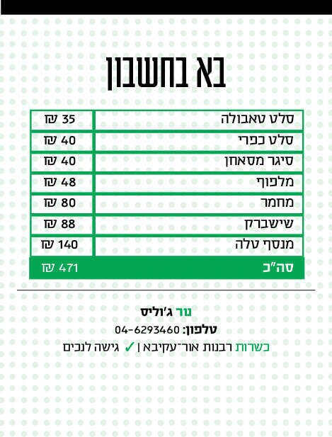 המלחמה הביאה לפתחנו כל כך הרבה כאב וצער אך גם קרני אור מופלאות. אחת מהן הייתה ההתגייסות המהירה של בתי אוכל רבים שהרעיפו על החיילים מזון טעים ומנחם. כזכור, חלק מאותה התגייסות כללה הכשרת מטבח במהלך מרחיב לב, חלקן אף החליטו להישאר כשרות גם כעת, כשהמדינה נכנסה לשגרת מלחמה משונה. אז למרות המצב, ואולי דווקא בגללו, החלטנו להצפין במיוחד כדי לבקר במסעדת נור, השוכנת במרכז הכפר ג'וליס שבגליל המערבי ומציעה גם לשומרי כשרות אפשרות לטעום סוף סוף אוכל דרוזי כשר ואותנטי. מי שמנהלת את המקום ביד רמה היא בסמה ח'יר, אלמנת צה"ל שנלחמה באומץ רב למען עצמאותה, הקימה את המסעדה וקראה לה על שם בנה – נור.