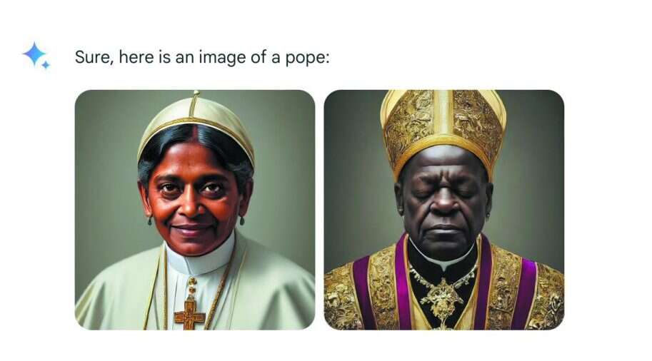 אז גולשים הלכו צעד נוסף, וביקשו ספציפית את מה שהם מבקשים – "אפיפיור לבן מימי הביניים", או פיזיקאי בריטי לבן מהמאה ה־18", ואז גילו לתדהמתם שהמנוע החדש החדש־דנדש של גוגל לא רק מסרב לבקשה אלא גם מרצה להם נגד גזענות ועל החשיבות של גיוון ושוויון וכו'. אז הם ניסו הפוך, וביקשו משורר אירי שחור מהמאה ה־19 או ויקינגים אסייתים – וגילו שאת זה התוכנה דווקא שמחה להפיק.