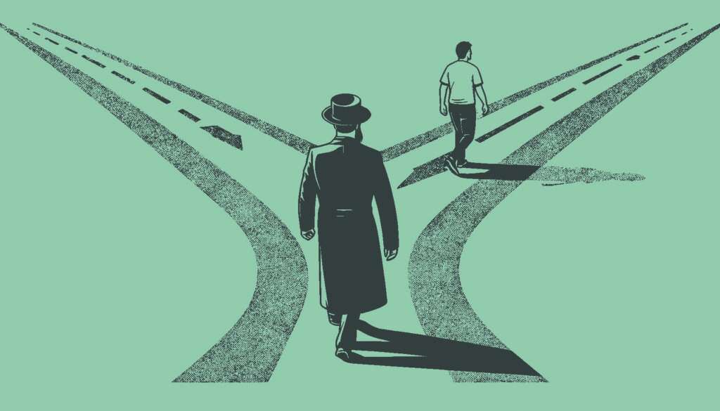 ככה עברו השנים. הבדלי המגזר בין שני החברים לא הפריעו להם. או ליתר דיוק, הם בכלל לא התעכבו עליהם. כשאביעד עשה בר מצווה והתחיל ללכת עם התפידנית שלו לכל מקום חיים לא שאל אותו מה הקטע של הצנצנת המוזרה הזו, הוא קיבל את זה שככה נהוג בעולם של אביעד, סמל סטטוס הוא סמל סטטוס. וכשחיים עשה בר מצווה והתחיל להסתובב עם מגבעת וחליפה אביעד לא התרגש במיוחד ולא ניסה להבין מה הקטע של אביזרי הלבוש התמוהים האלה.