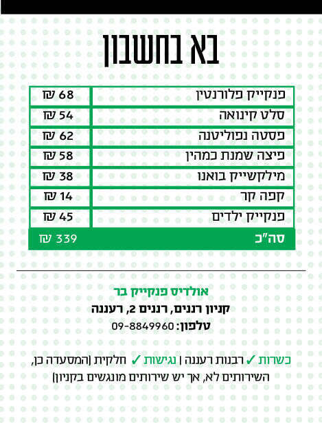 הנה ימים באים, ושוב מגיע החופש הגדול. אומנם אנחנו חיים במציאות כאוטית אבל יש שני קבועים ודאיים בקיץ הישראלי: חום אימים וילדים משועממים. עם פרדתנו משלב גני הילדים התחלנו בעת האחרונה מסורת משפחתית חדשה: בכל יום הולדת של אחד מבני המשפחה אנחנו יוצאים לארוחת ערב מוקדמת במסעדה לפי בחירתו של חתן השמחה. כך מצאנו את עצמנו באולדיס הרעננית שבקניון רננים, לאחר שבן התשע הכריז שהוא רוצה מסעדת פנקייקים.
