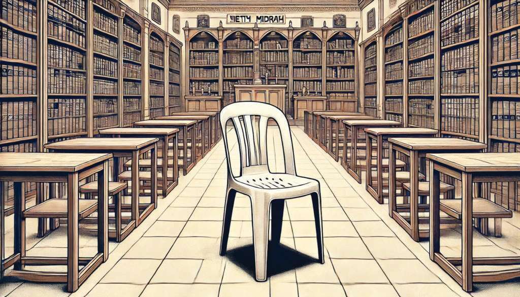 והרב בש אמר, נו נו, מה העניין בכיסא? וכי כיסא ריק יכול להחזיר מישהו הביתה מהשבי? וצבי בלע את הרוק ואמר, לא, הרב. כיסא ריק לא יכול להחזיר אף אחד הביתה, אבל אולי לפחות יהיה מעין תזכורת לציבור. תזכורת שהמצב לא פשוט. תזכורת שאולי תגרום למישהו להתפלל קצת יותר. הכיסא הריק הוא יותר בשבילנו הרב. הרב מבין אותי? והרב בש הנהנן ומולל מעט בזקנו וטפח לצבי על הכתף ואמר לו, יש לך לב טוב צבי, יש לך לב טוב. וככה עמד לו הכיסא הריק עד שגלעד חזר הביתה. בקרוב גם הפעם בעזרת השם.
