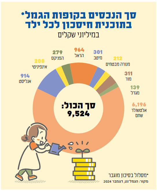 קופת הגמל "חיסכון לכל ילד בסיכון מוגבר" של אלטשולר שחם, למשל, ציינה במכתב לחוסכים כי שיעור ההוצאות הישירות לשנת 2025 יזנק והן צפויות לעמוד על 0.5% מהחיסכון. לשם השוואה, בשנת 2022 הן עמדו על 0.18%, כך שהסכום בשנה הנוכחית צפוי להיות יותר מכפול. נשוב ונזכיר: מדובר בדמי ניהול שנגבים ישירות מהחיסכון של הילד, ובניגוד לדמי הניהול ה"רגילים", אינם מסובסדים על ידי המדינה. אם נעשה חישוב קטן – אלטשולר מנהלת במסלול "הסיכון המוגבר" של הילדים כ־6.3 מיליארד שקל. חצי אחוז מהסכום הזה, הוא יותר מ־31 מיליון שקל בשנה. סכום מכובד מאוד שנגרע מהחסכונות, והולך לטובת מנהלי השקעות שונים ומשונים.