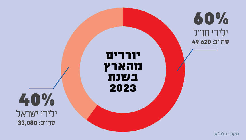 בשנת 2022 פרצה המלחמה באוקראינה, ומספר העולים ארצה זינק פי שלושה. באותה שנה, לפני הרפורמה המשפטית או כהונת הממשלה הנוכחית, עזבו את ישראל קצת יותר מ־55 אלף תושבים, 59% מהם היו ילידי חו"ל. הנתונים של שנת 2023 מתאימים באופן מדויק לאותה תופעה. חישוב פשוט שאנחנו עורכים כאן מעלה שמתוך 82,700 איש שירדו מהארץ בשנת 2023, רק כ־33,000 היו ילידי הארץ. לשם השוואה, ב־2022 ירדו מהארץ כ־23 אלף צברים. זה ההיקף האמיתי של גל הירידה.
